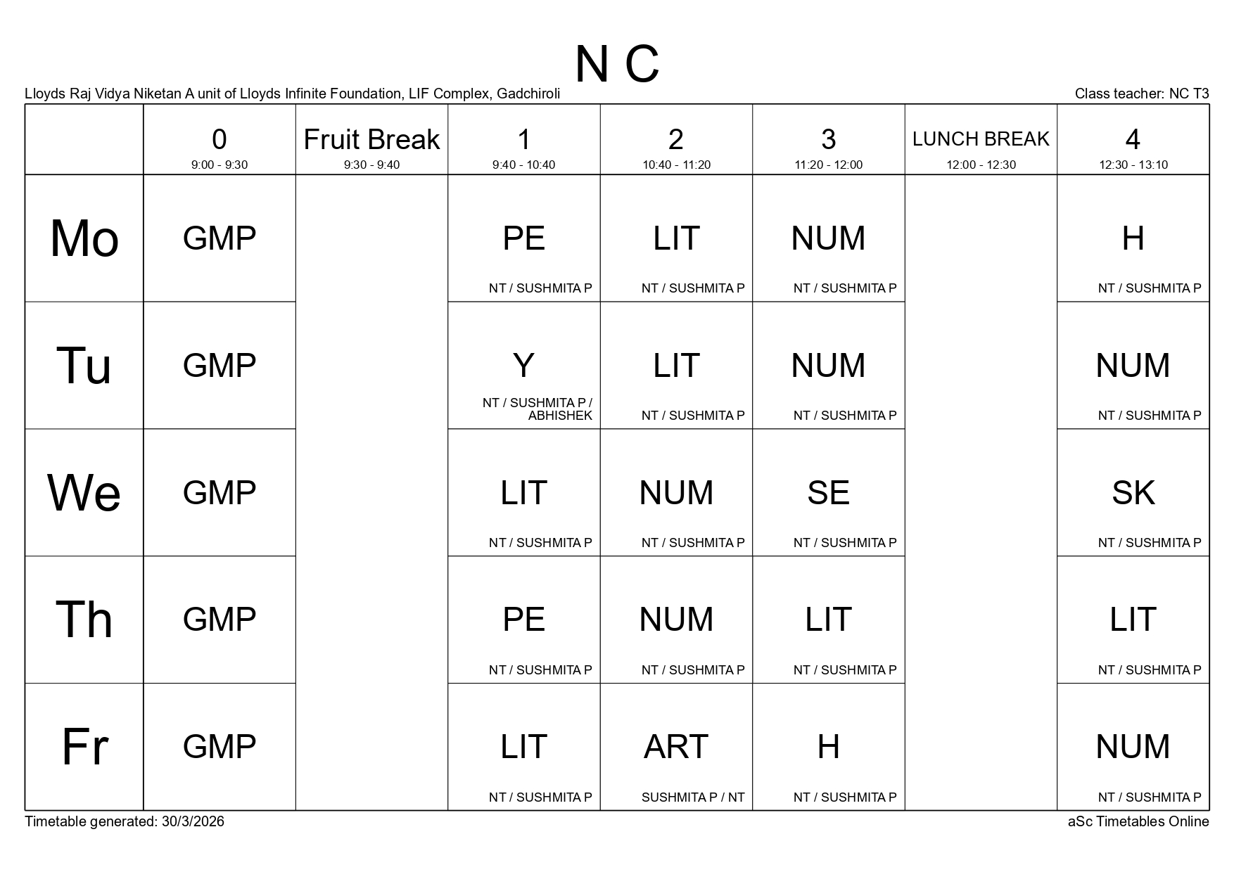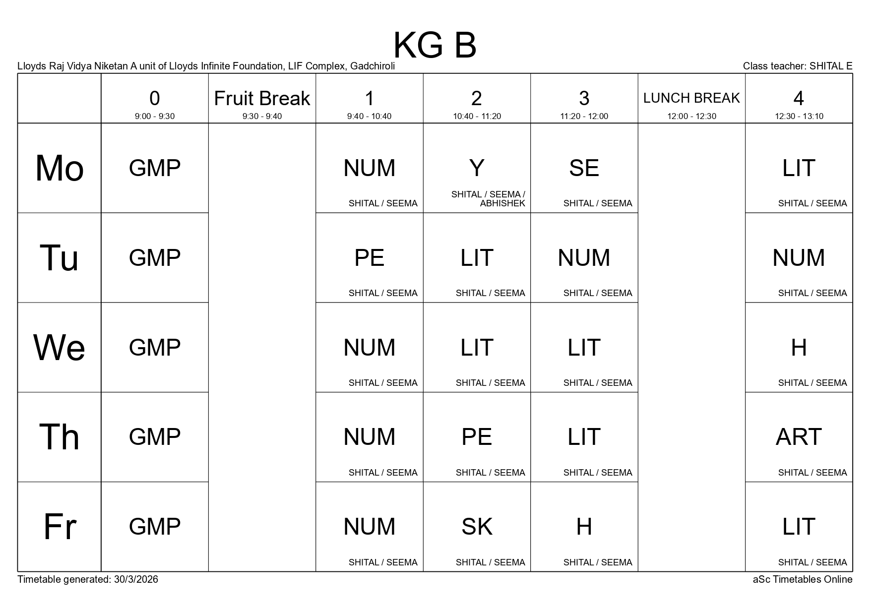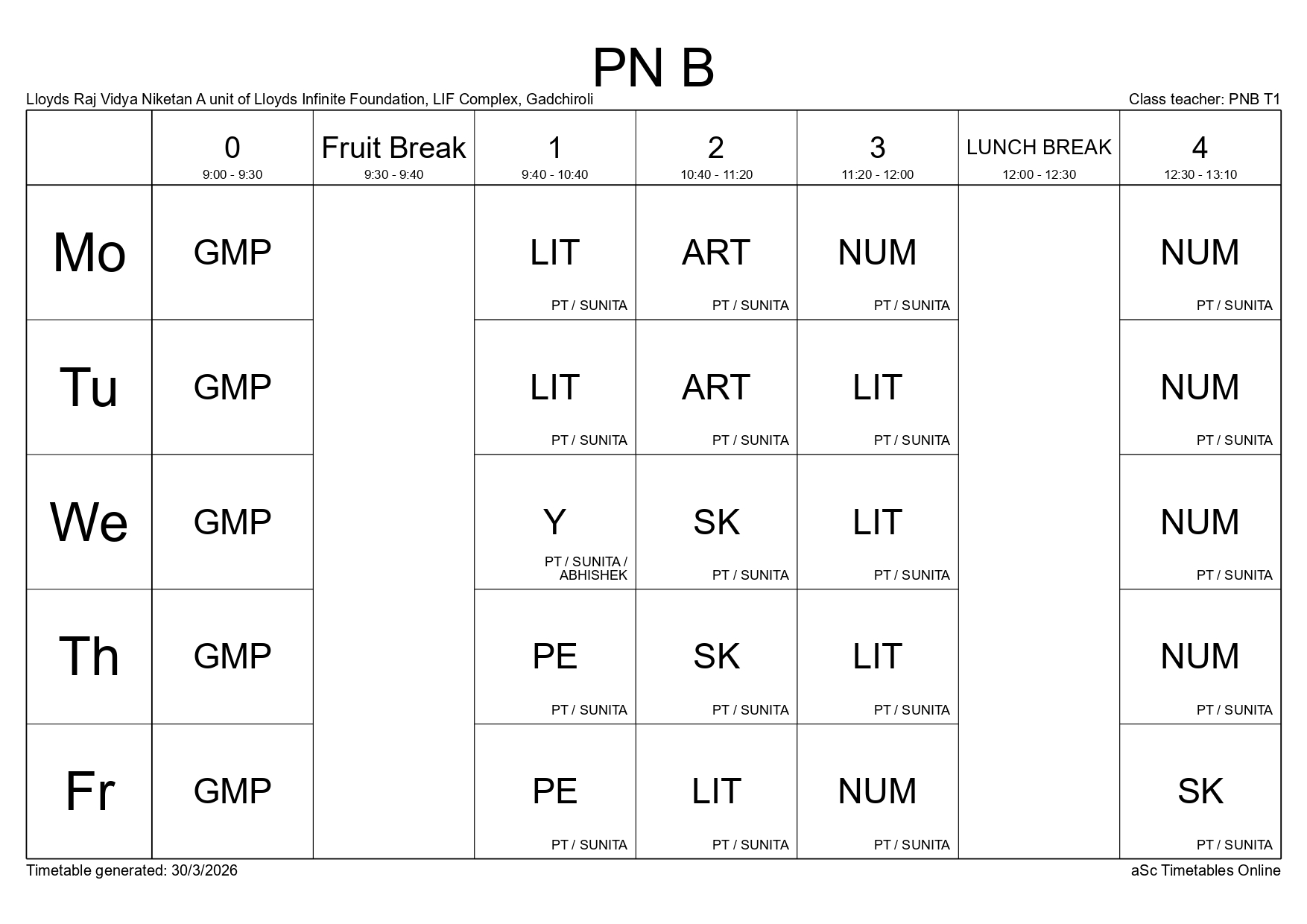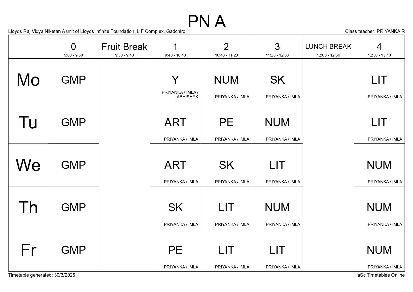 Class Timetable