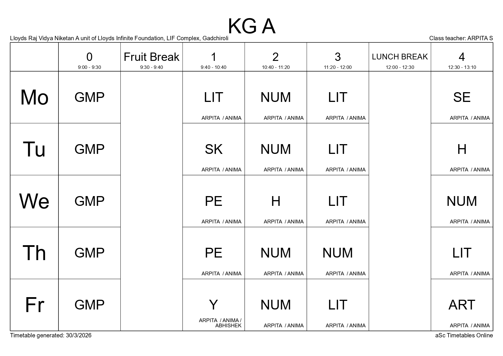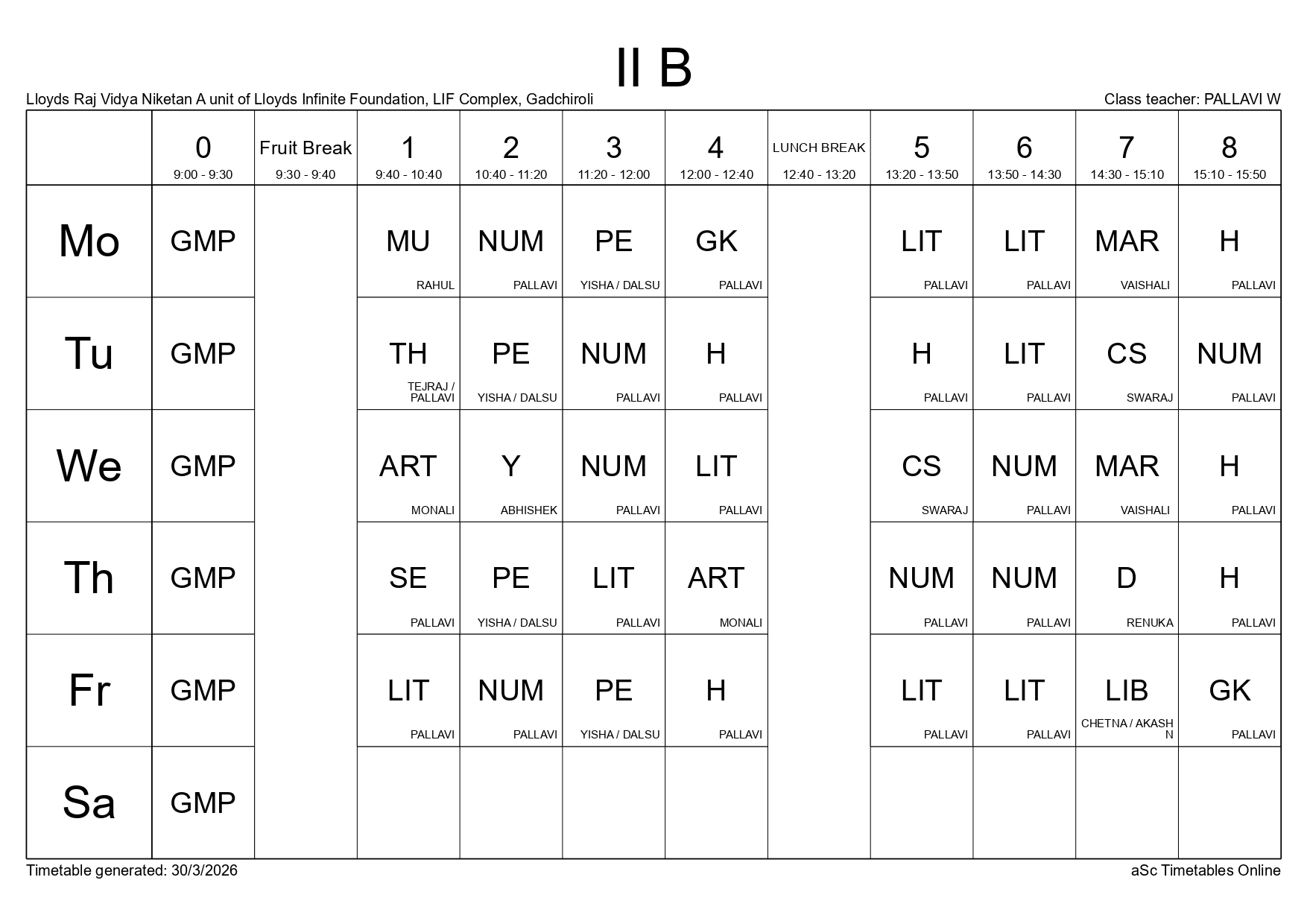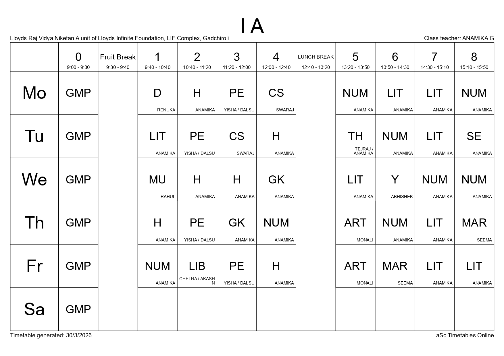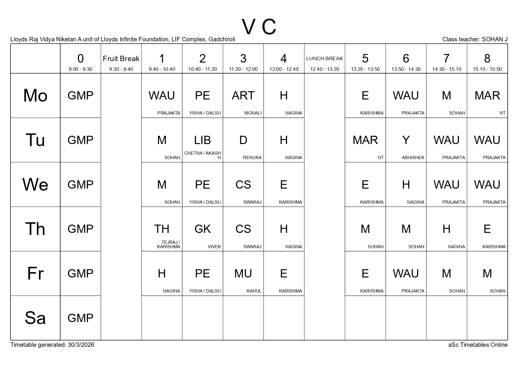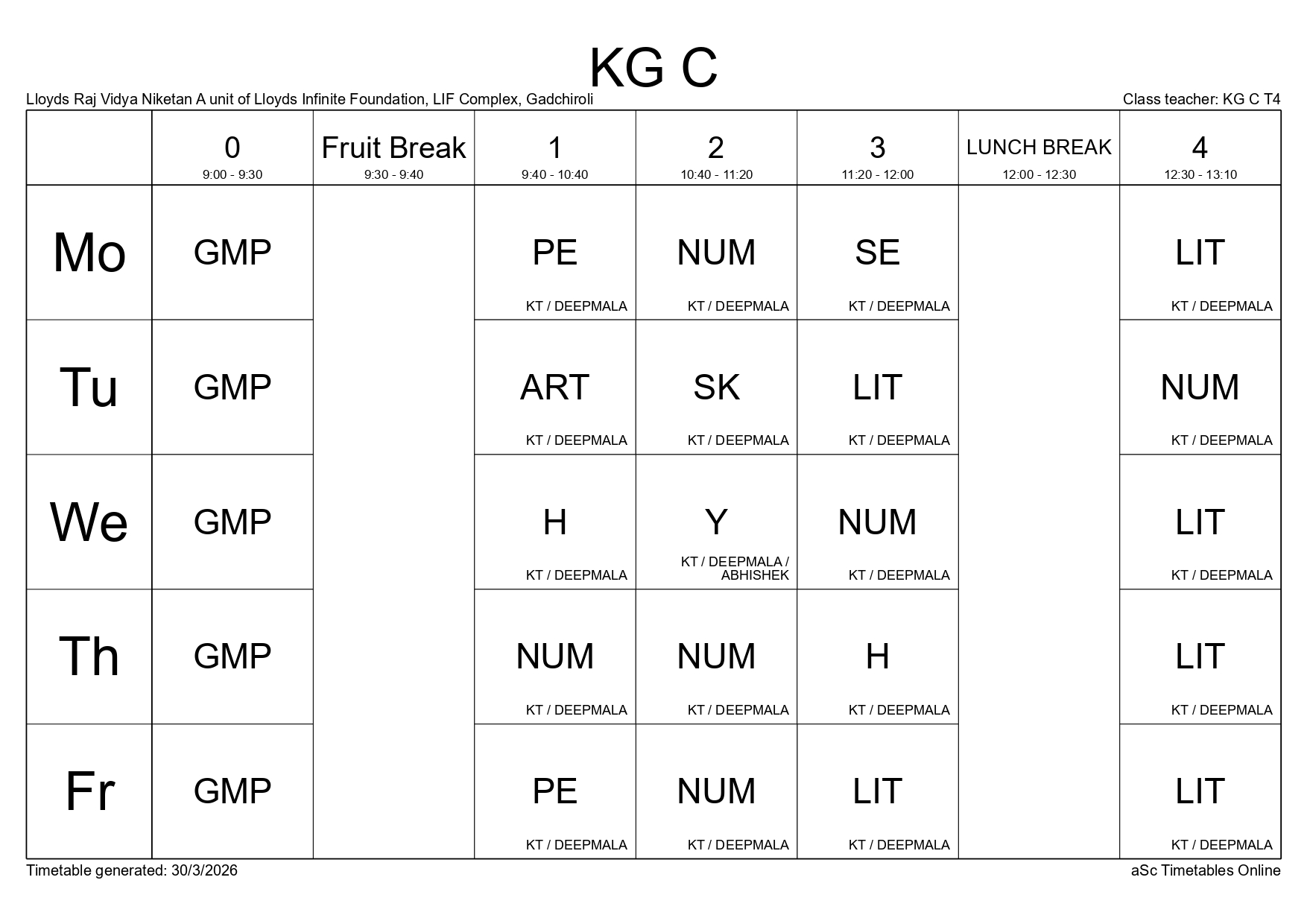 Class Timetable