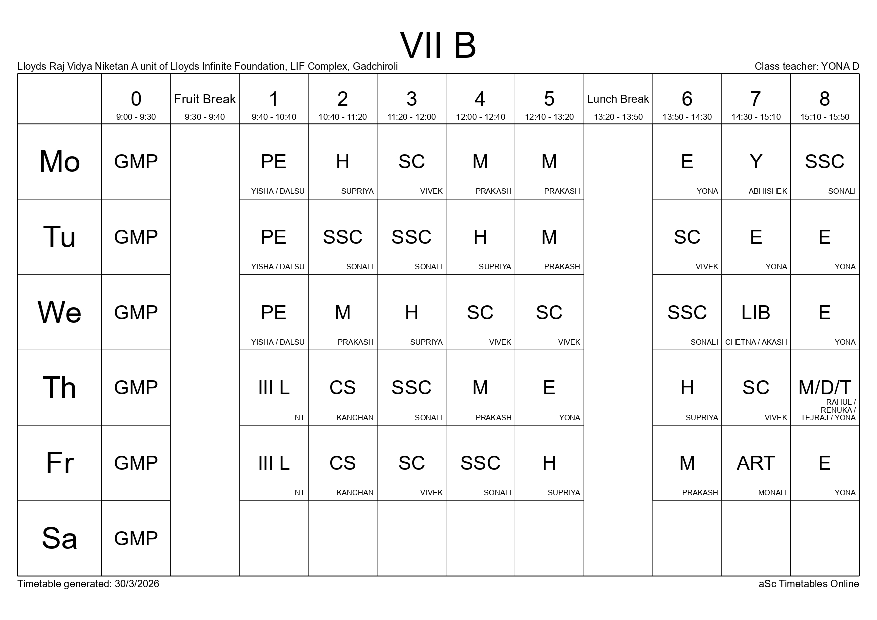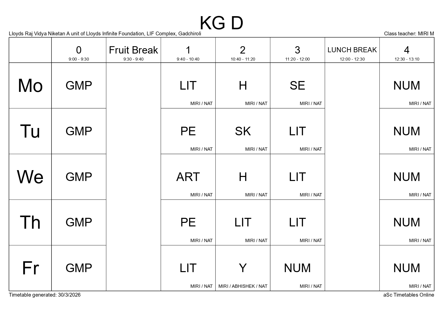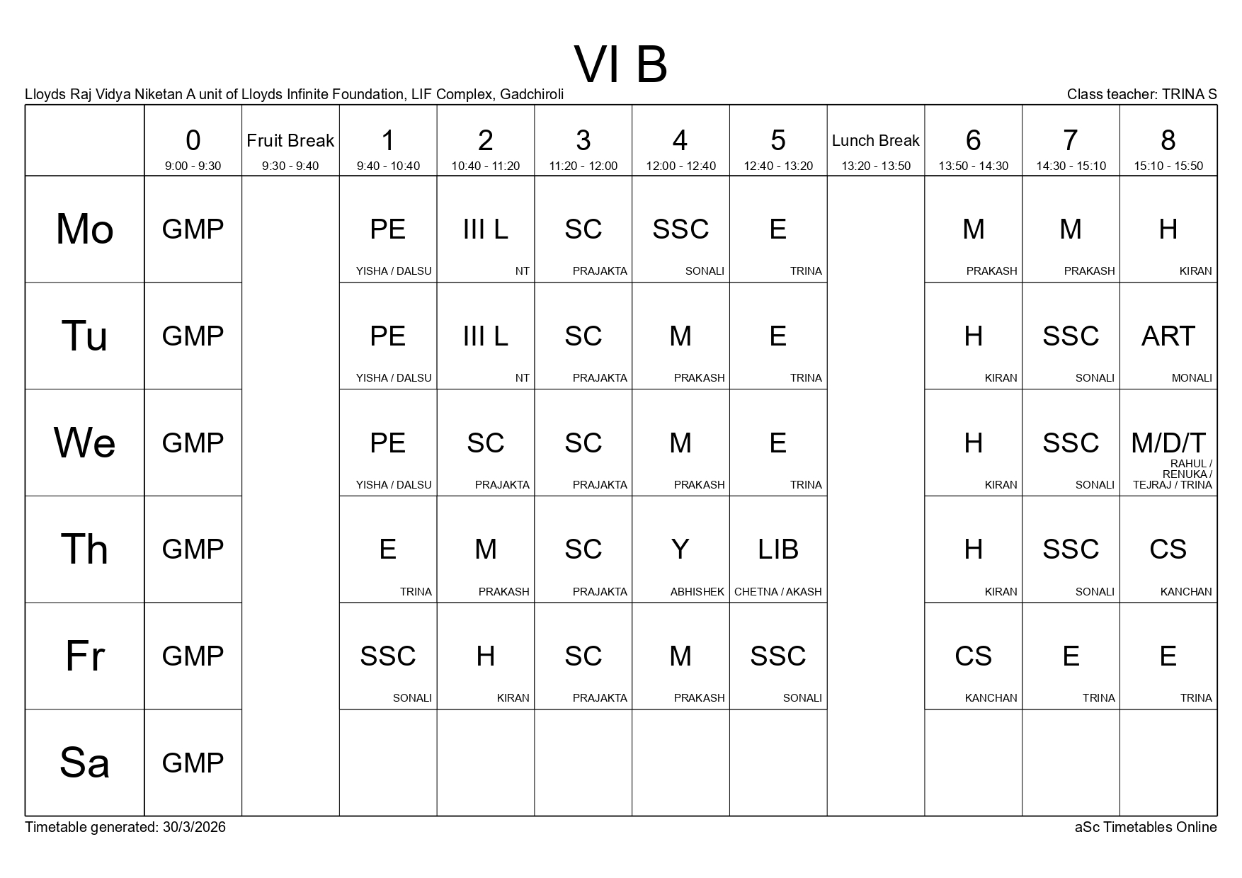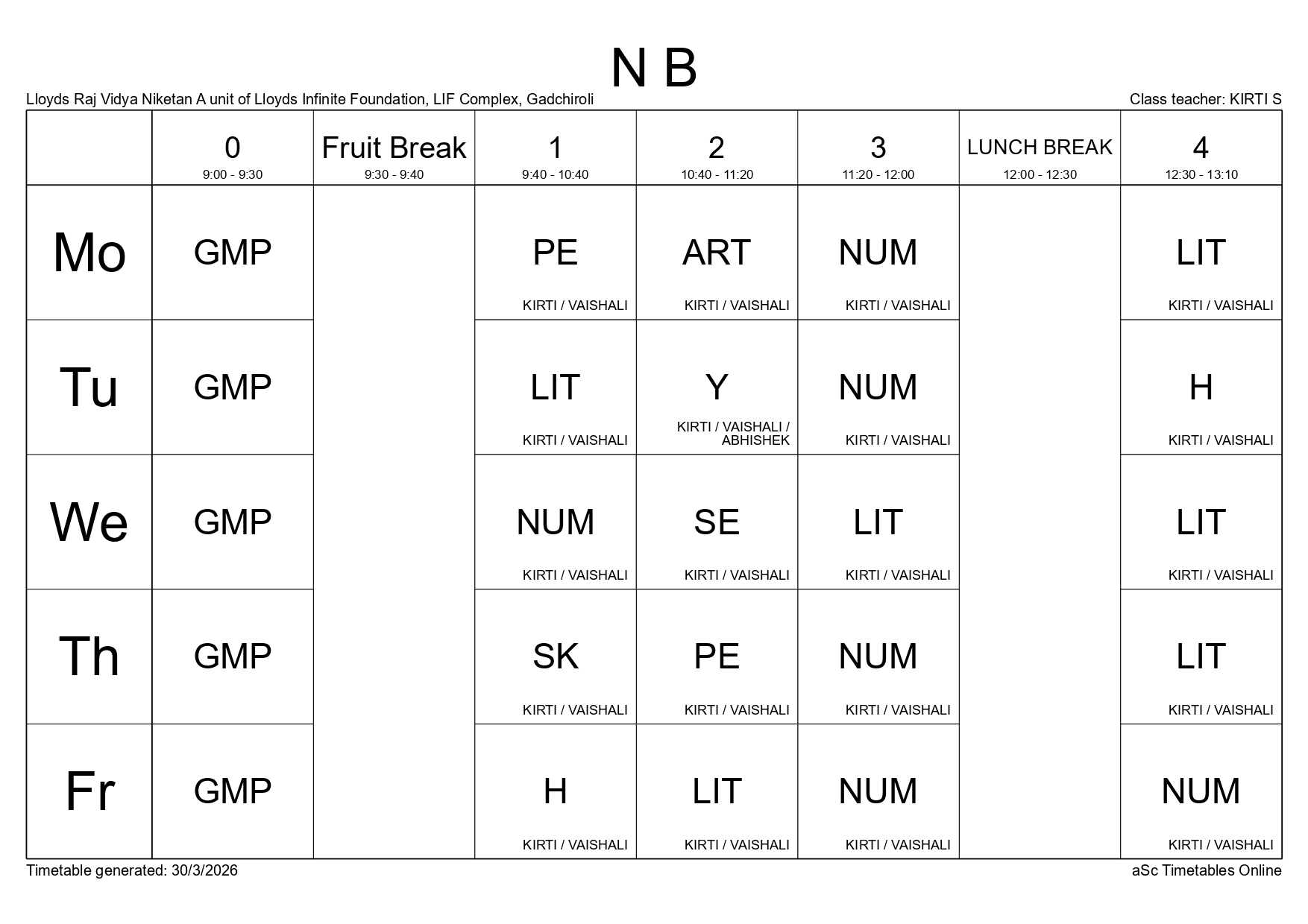 Class Timetable