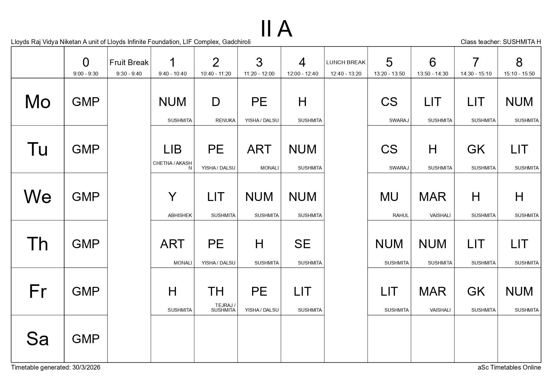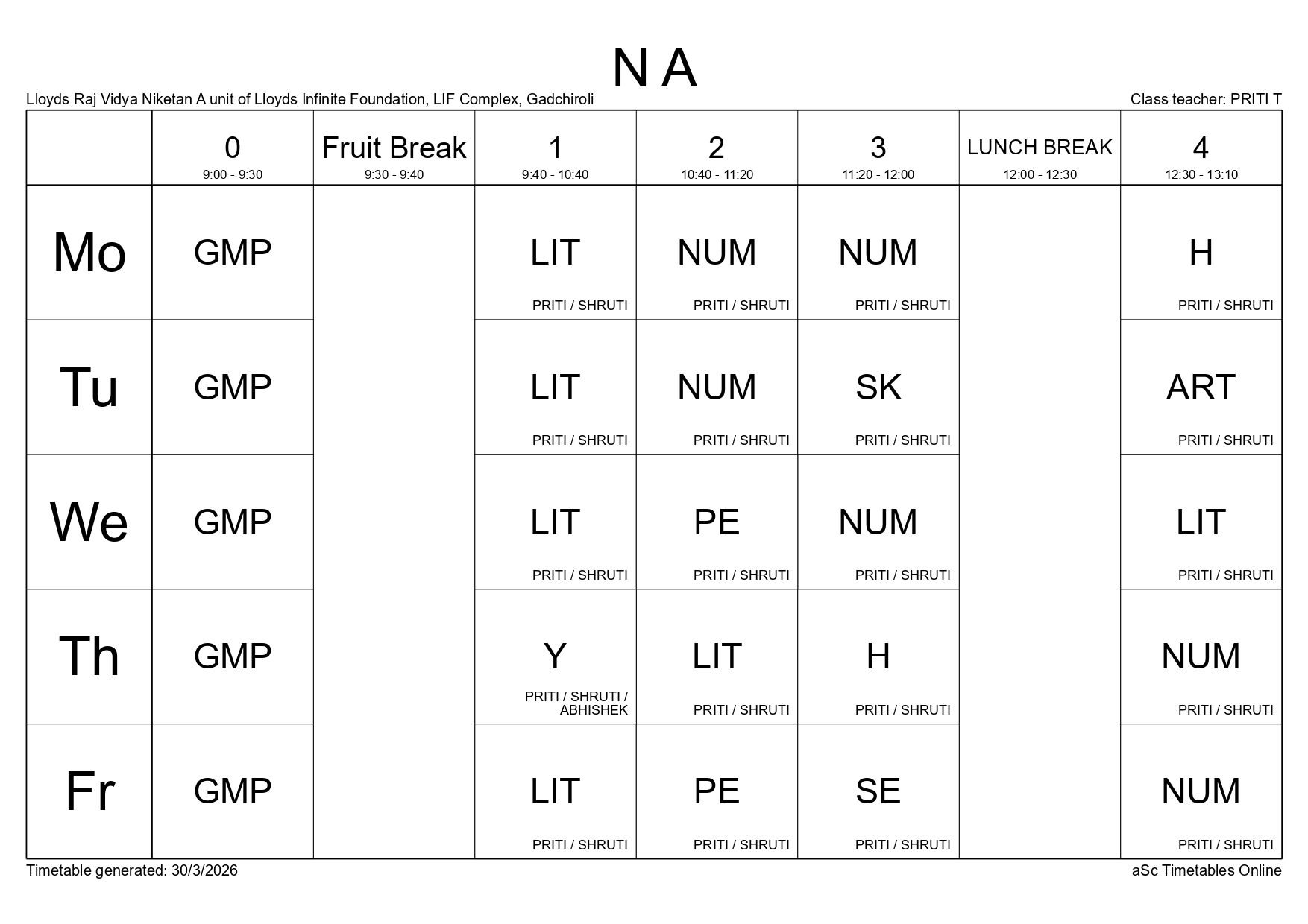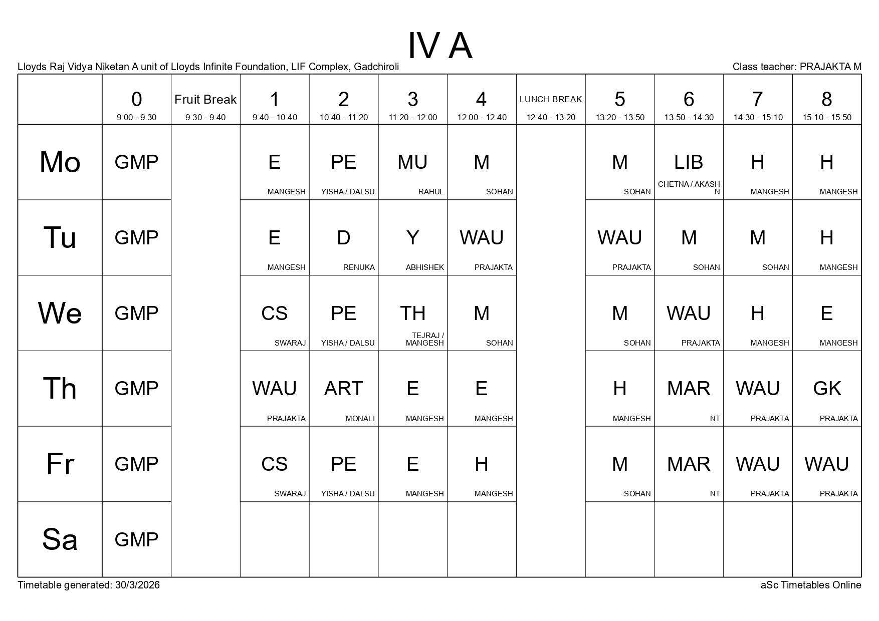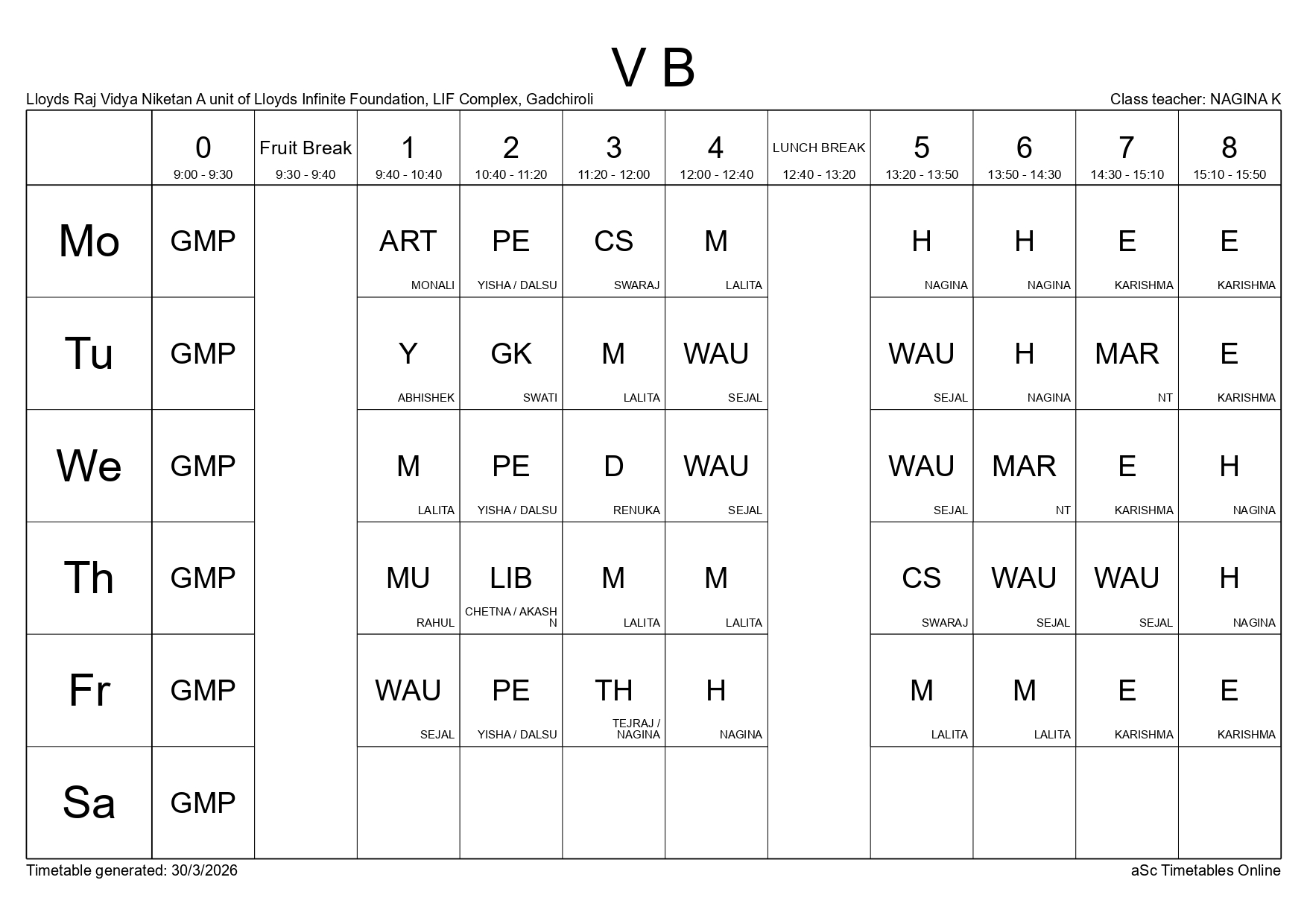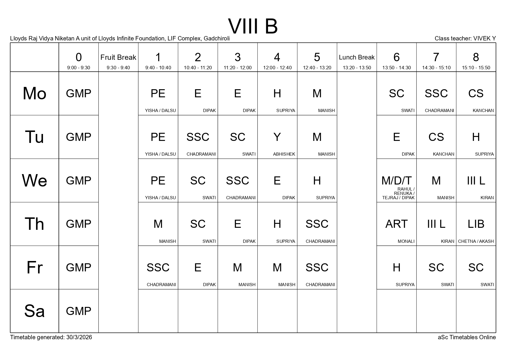 Class Timetable