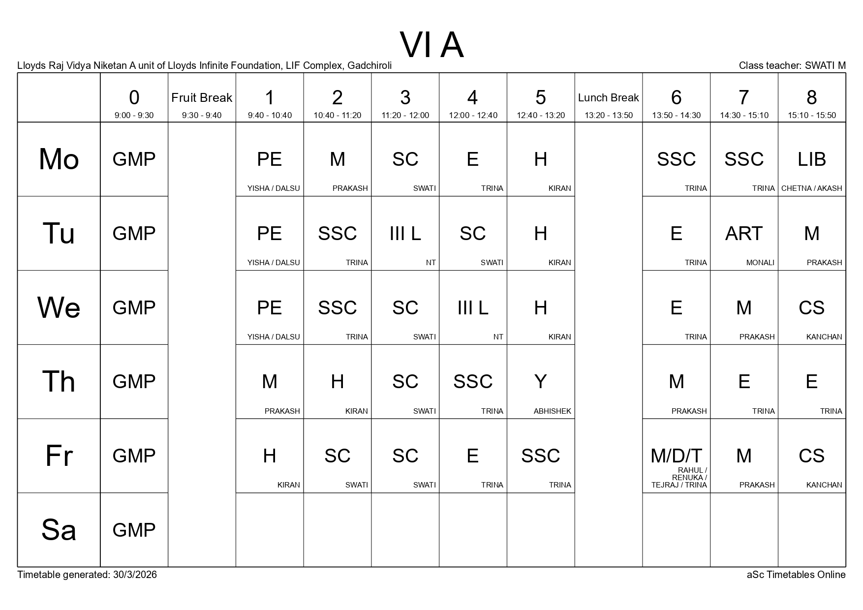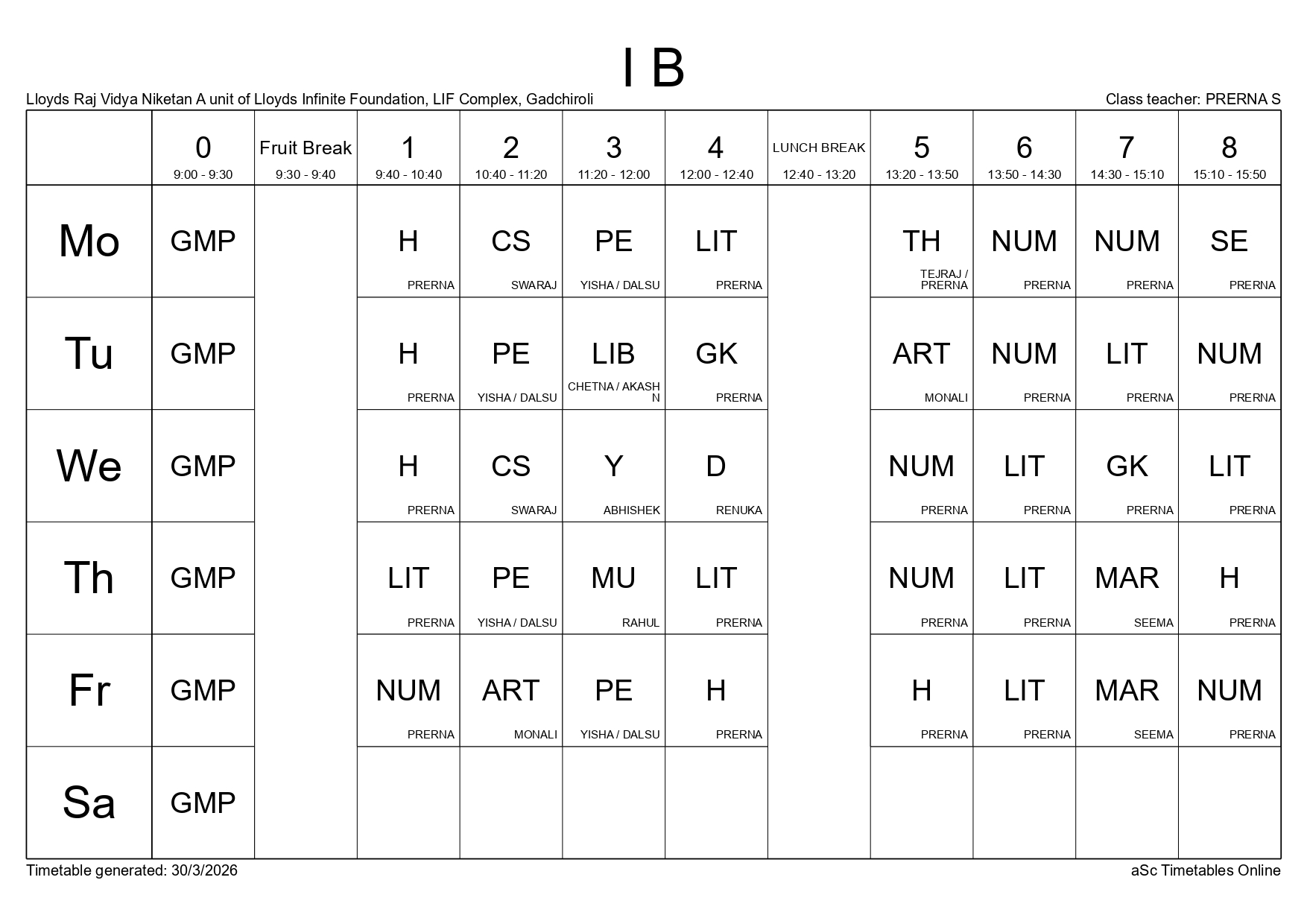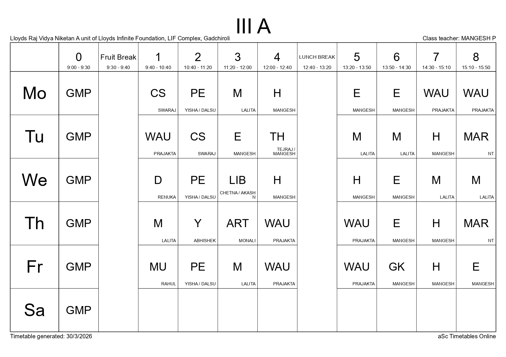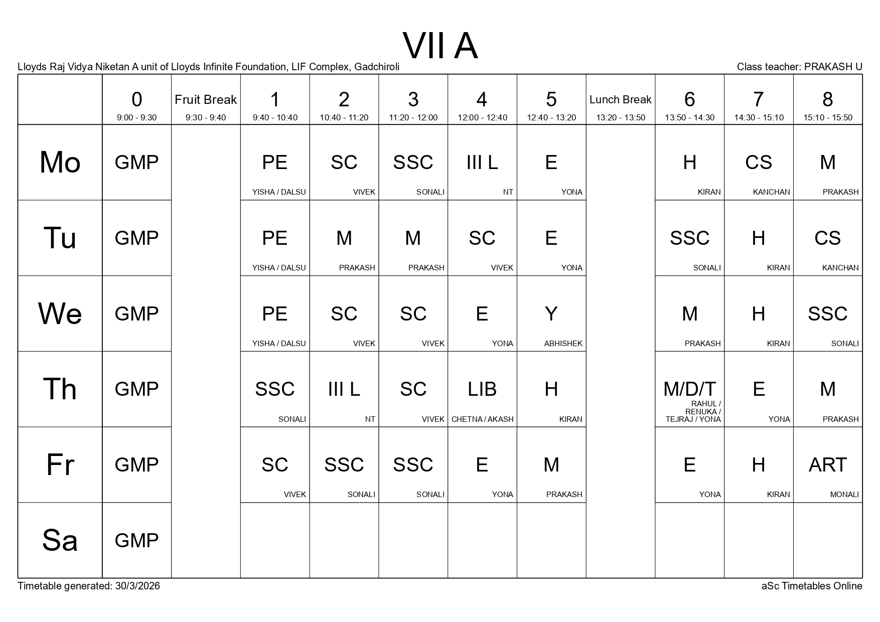 Class Timetable