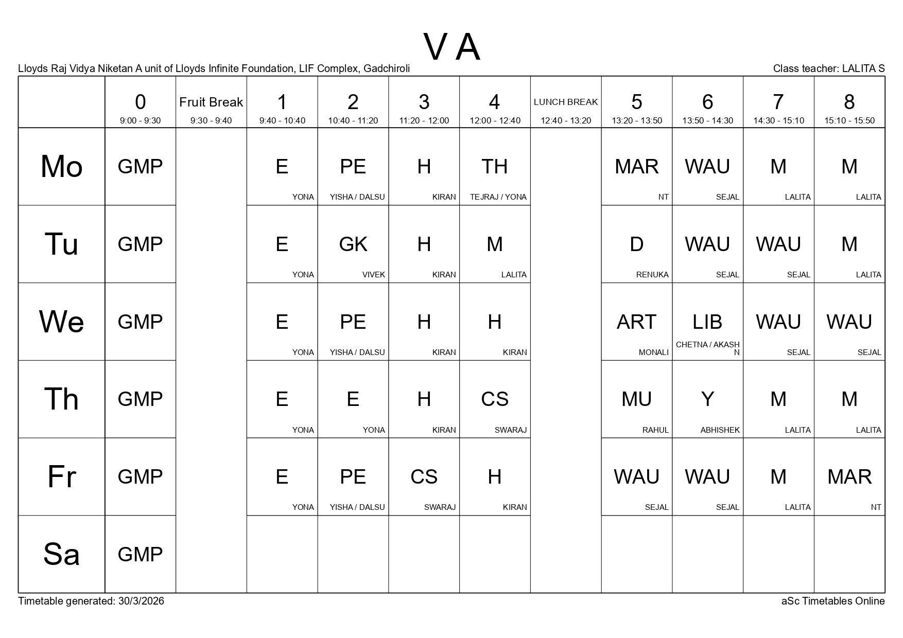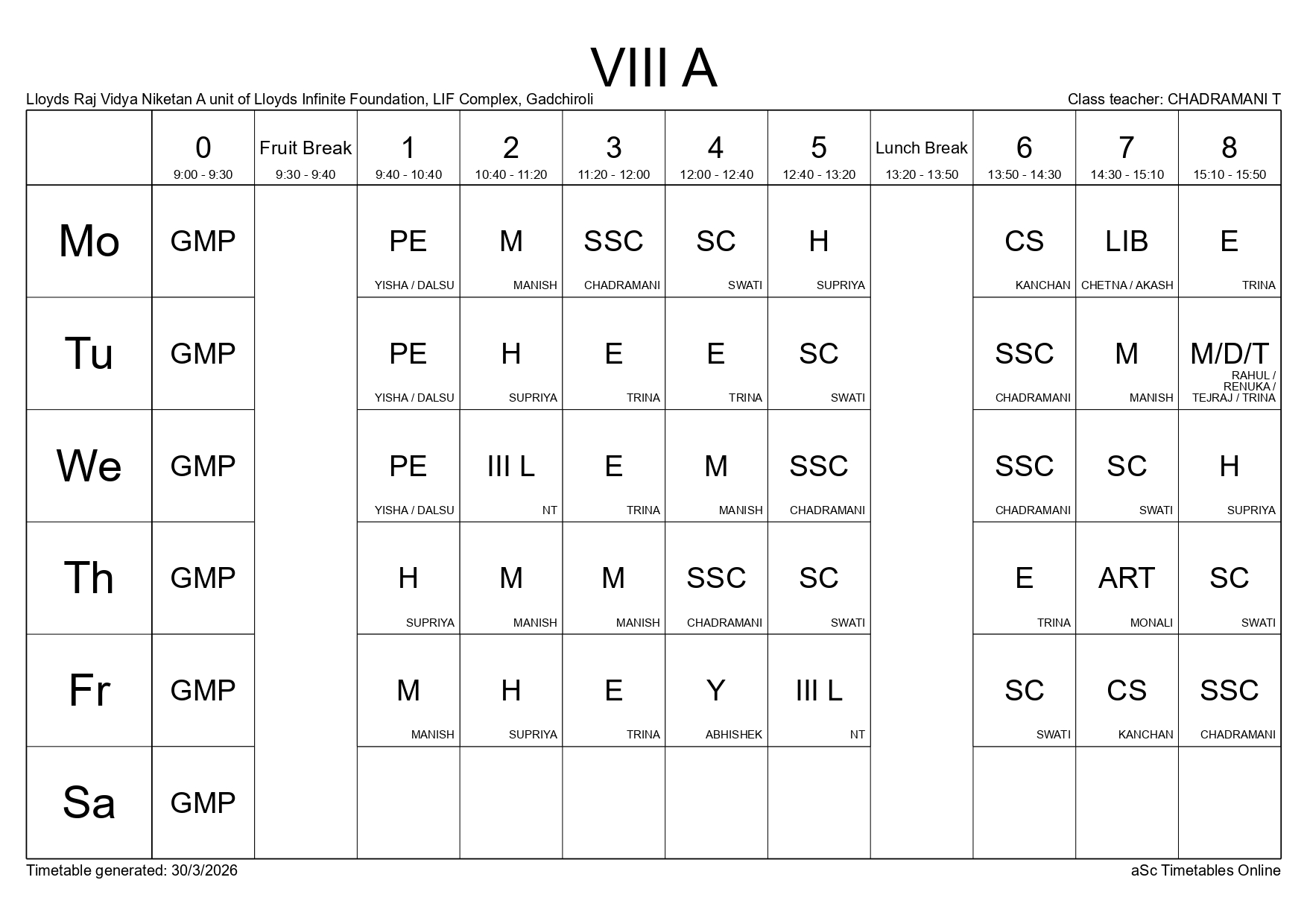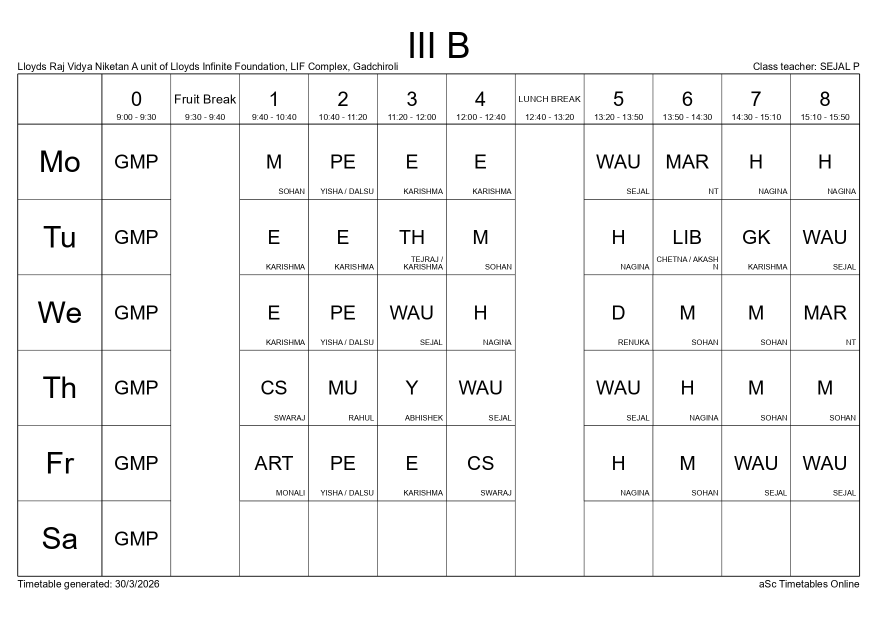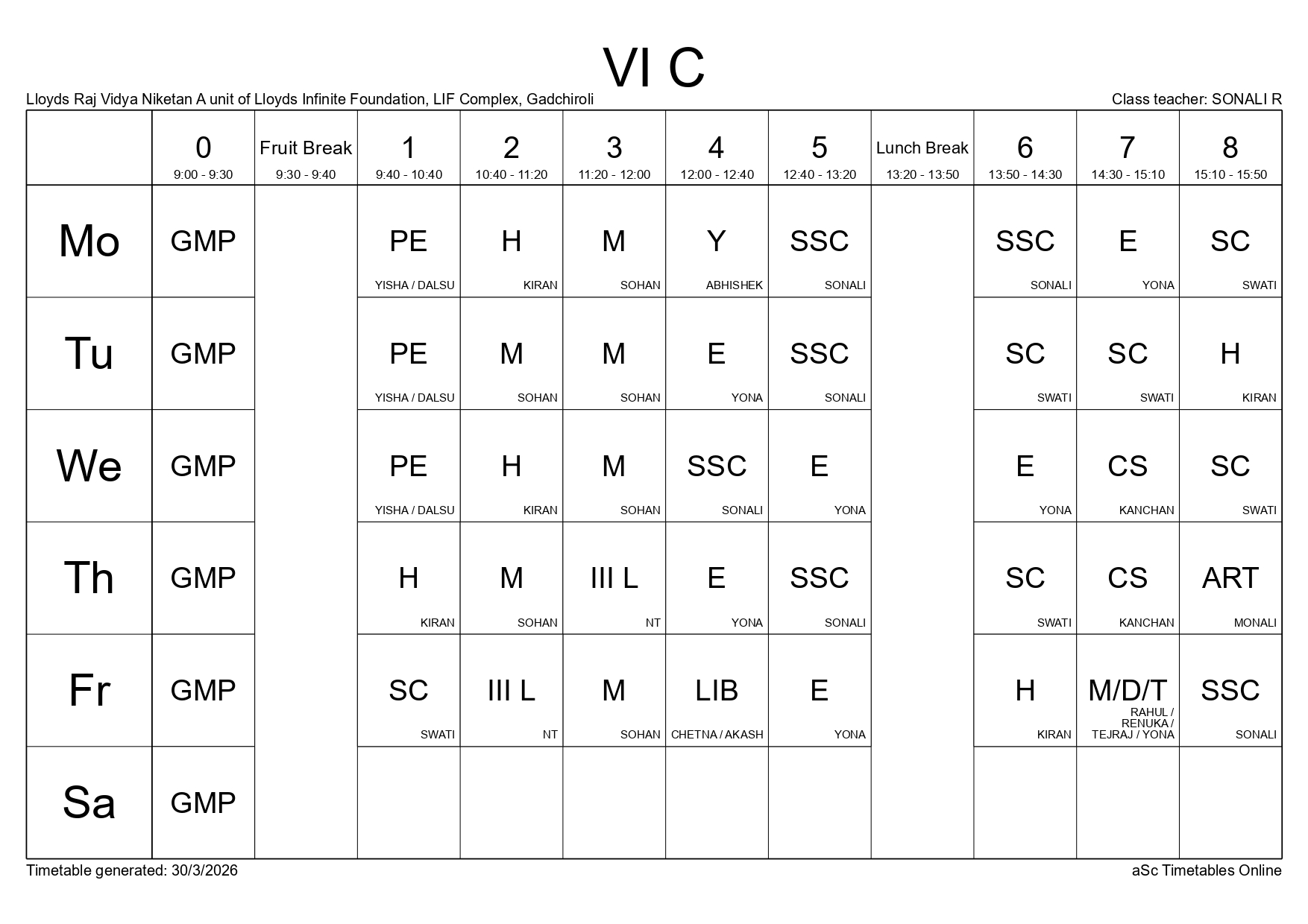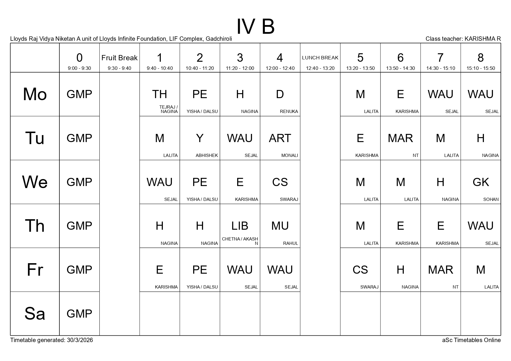 Class Timetable